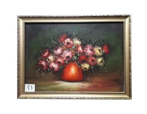 Generic - لوحة فازة بني كبير زيت بارز رسم يد و بالسكينة من روائع الفن فريم خشب طبيعى ذهبي بديكور مقاس 57 × 77 سم