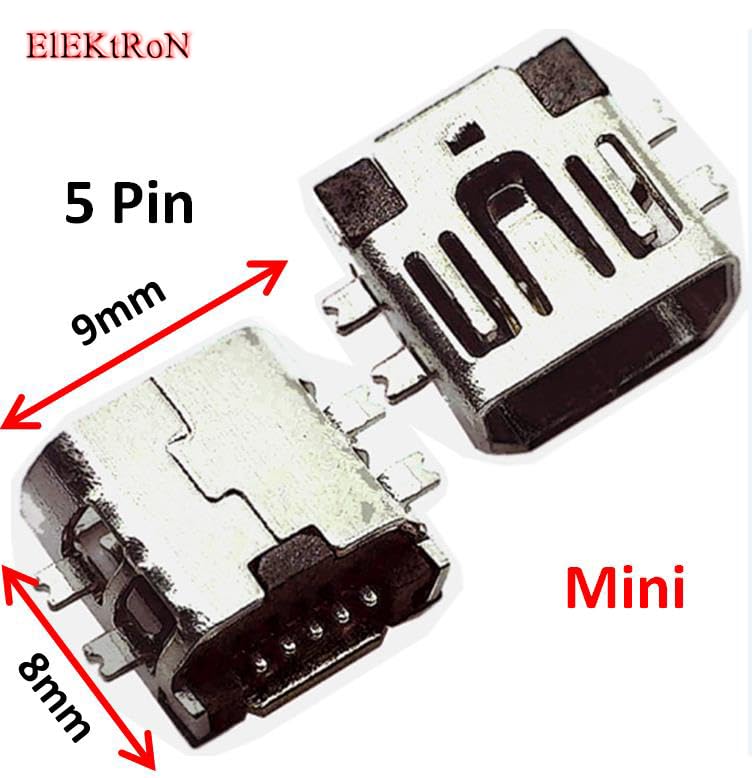 Generic - 5pcs Female Port 5P 5 P SMD SMT Micro USB 2.0 Charging Socket Jack B Type 5 Pin Mini Connector Repair Type 6 Replacement Adapter