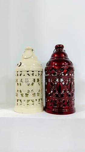 Generic - عرض 6 قطع فوانيس رمضان معدن الوان مختلفه مقاس 19 سم لجميع الأعمار مع هم شمع ELECTONI هدية