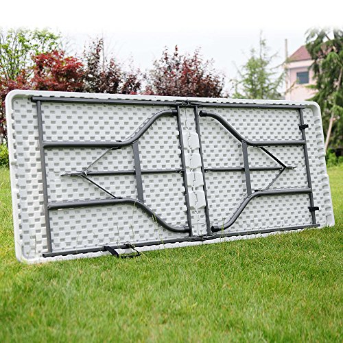 - 【VERSATILE】: The portable folding table can be used both indoors and outdoors. It is also ideal for gardens, balconies, camping, picnics, flea Markets, Celebrations,Modern and Neutral Rattan Look Can Blend in with Various Scenes.