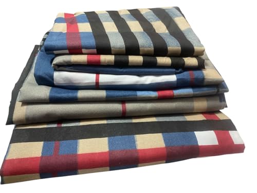 Generic - 6 Piece Cotton Striped & Checkered Pattern Woven Fabric Bedding Set, Multicolor, Blue, Red, Beige, Black, Grey, 2 Sheet 220 * 200cm + 2 Pillow + 2 Pillowcases_ 2 Bed
