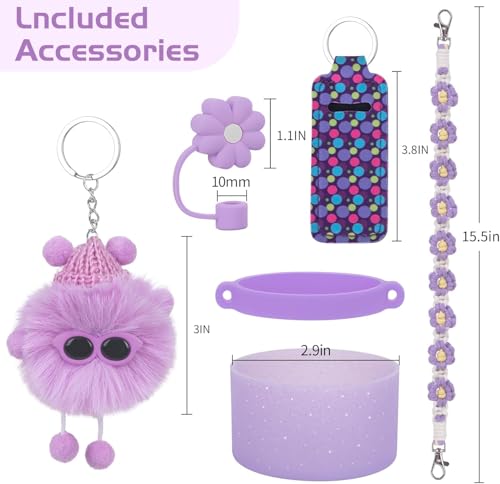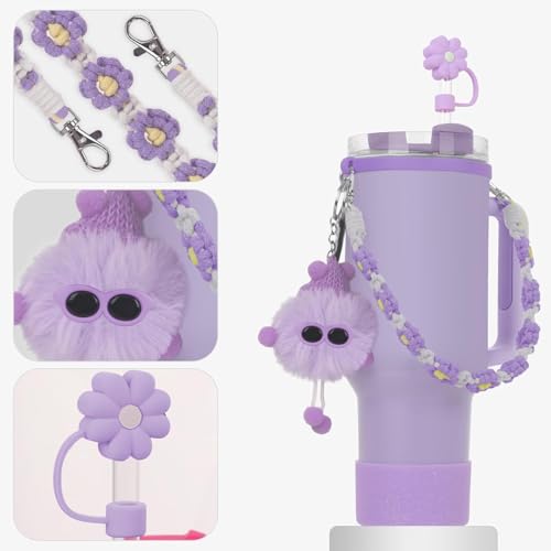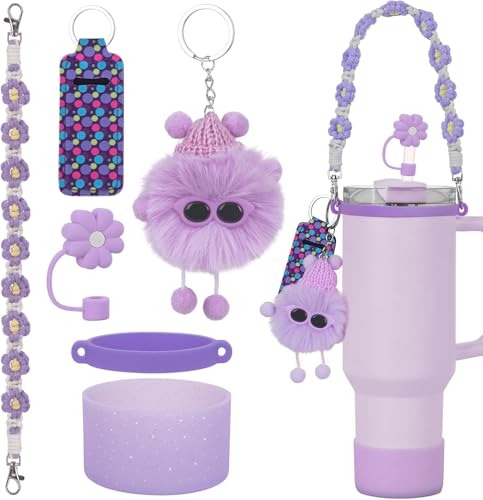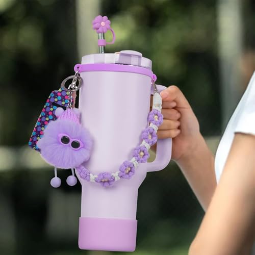 - BEST COMBINATION:Our accessories for stanley cup set includes 1 hand woven daisy strap for stanley cup, 1 silicone ring, 1 silicone stanley cup tumbler boot, 1 soot sprite, 1 lipstick cover, and 1 straw cover topper. With just one set, you can fully equip your cupa
