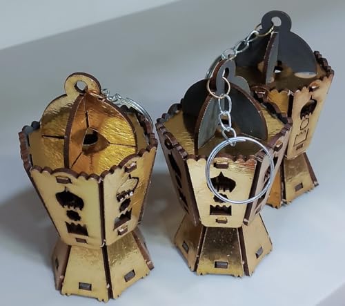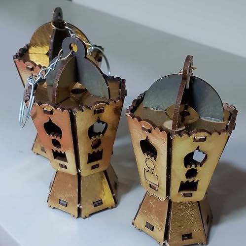 Generic - طقم سلسلة مفاتيح فانوس رمضان خشبي ، مقاس 7 سم عرض من 6 قطع خمات عاليه الجوده ، تصميم نجمة وهلال ، هدية زينة عطلة ، حلقة مفاتيح معدنية INCLUDED بلون دهبى