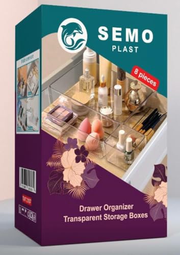 - Drawer Organizer: Set of 8 clear storage boxes perfect for organizing cosmetics and accessories