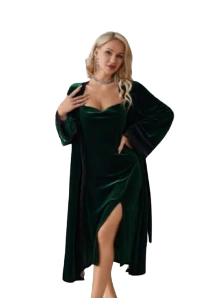 هنادي - قميص قطيفة ناعم بالروب – لون زيتي – مقاس وان سايز لحد 80 كيلو | HN 9061