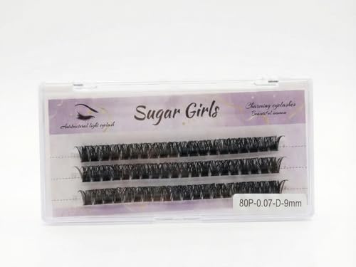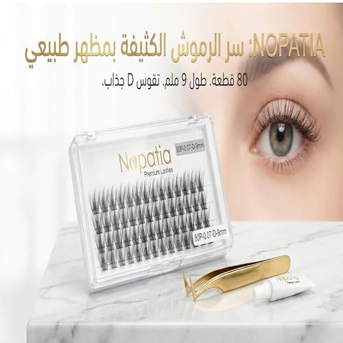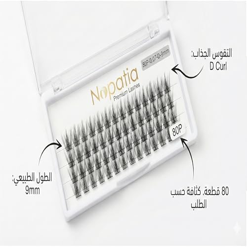 Nopatia - 80 Individual Cluster Lashes Tray - Nopatia Short Lash Extensions 9mm High Curl, Micro Thickness - Light Bristles & Anti-Bacterial for Home Eyelash Extensions