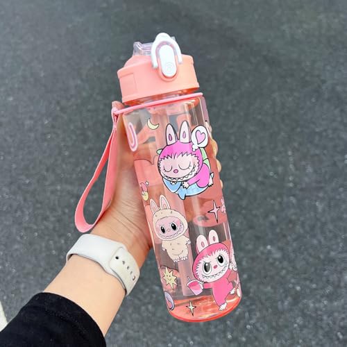 Generic - زجاجة مياه زمزمية للأطفال المدرسة – لبوبو كرتون – مضاد للتسرب بغطاء أمان وشفاط – 800 مل – خفيفة وآمنة (Pink)