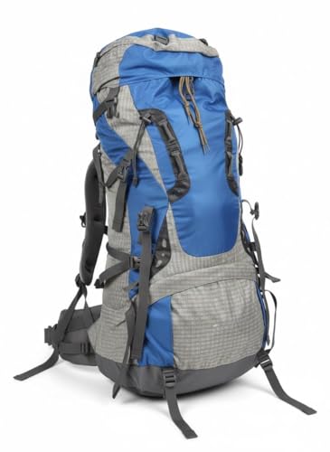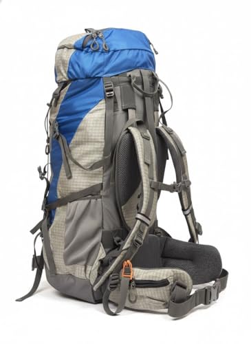 Generic - 80L Internal Frame Hiking Backpack, Blue and Tan, Water-Resistant Nylon, Padded Mesh Back Support, Adjustable Straps for travelling camping bag with backstand