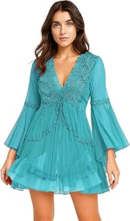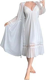 Generic - لانجري طويل قميص حمالات مطعم بدانتيل و روب شيفون مطعم بدانتيل من الأطراف (واحد مقاس ليبس لحد 85 كيلو)