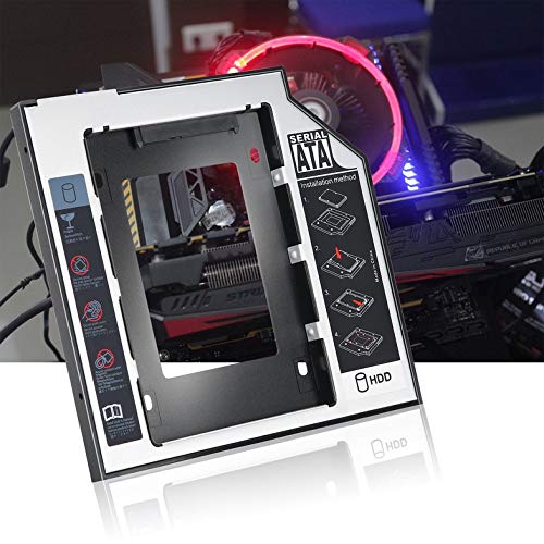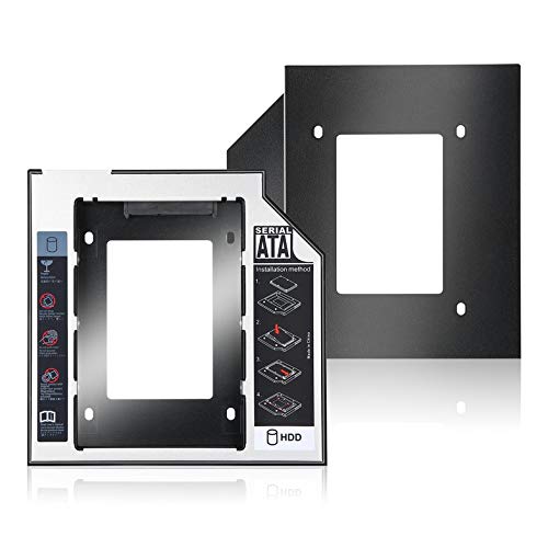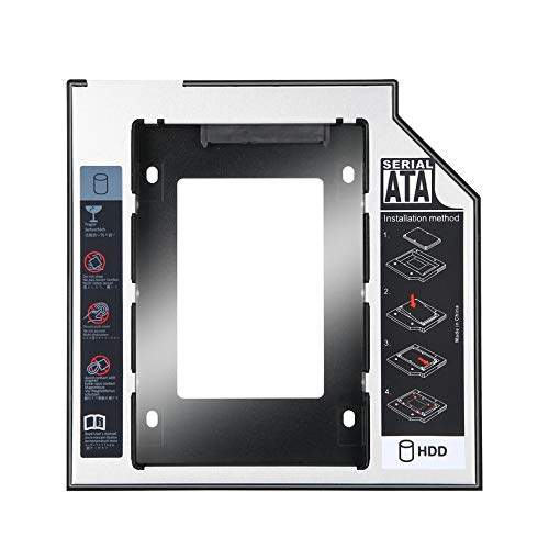 CamKpell - مثبت أقراص صلبة ساتا ثانوي لهارد HDD وهارد SSD عالمي من الألومنيوم مقاس 9.5 ملم مع 4 مسامير لمحول فتحة CD/DVD-ROM البصرية