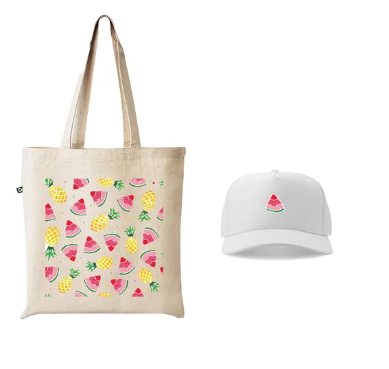 Generic - A set of a tote bag and a cap white 2 suitable for trips and summer vacations in distinctive shapes and colors