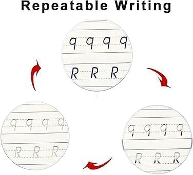 Generic - كتاب سحري مقاس A5 للتدريب على كتابة الحروف الأبجدية باللغة الانجليزية، كتاب تعليمي قابل لإعادة الاستخدام مع مصحح لقبضة القلم وأنابيب إعادة تعبئة القلم للأطفال في مرحلة ما قبل المدرسة، عبوة من 4 قطع