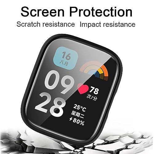 Acadeny - [Pack of 2] Case Compatible with Xiaomi Redmi Watch 3 Active, Black Silver High Transparency All-Round Protective Case with Screen Protector, [Anti-Stain] [Scratch-Resistant] Ultra Thin TPU