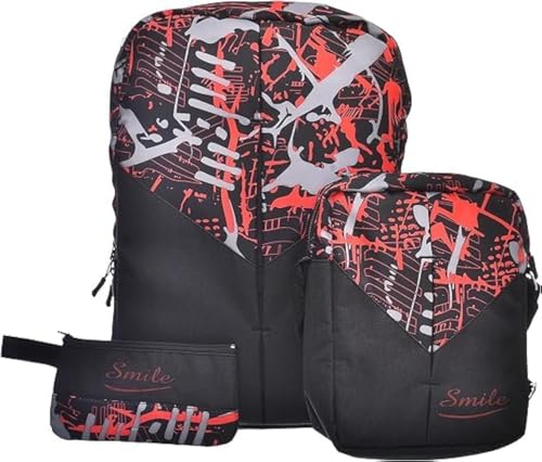 Generic - شنطة ظهر من القماش مزودة بمنفذ شاحن USB وكتف مريح للجنسين من اكسيسوريز شوب، مجموعة من 3 قطع - بلونين أسود وأحمر