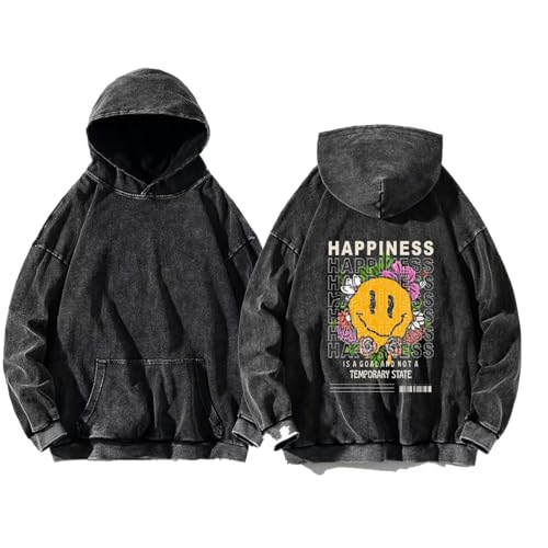 Generic - سويت شيرت بغطاء للرأس كبير الحجم للشباب بتأثير غسيل حمضي بمقاس كبير، رمادي 23