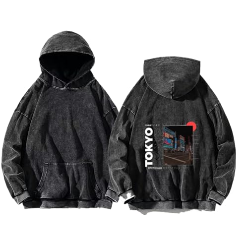 Generic - acid wash gray oversize Youth hoodie back art over size TEXT job work 39 tokyo
