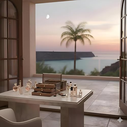 - Its compact, multi-level structure maximizes space efficiency on your vanity or dresser, turning clutter into a neatly arranged display without occupying excessive room.