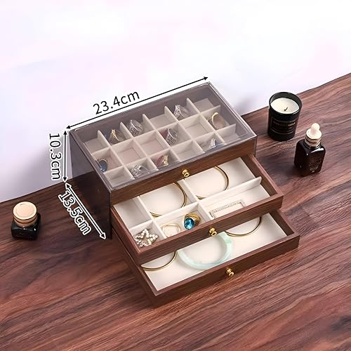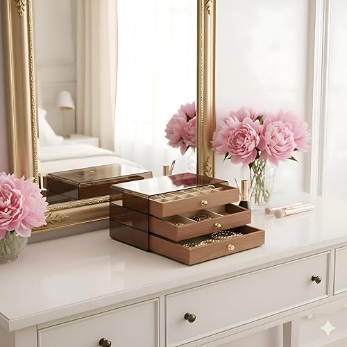 - Featuring three distinct drawers with customized internal compartments, it efficiently organizes jewelry, cosmetics, and small accessories, making each item easily accessible.