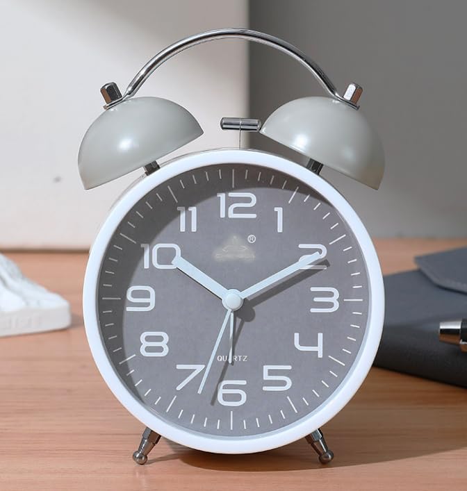 Generic - ساعة منبه من الاكريليك، تصميم جرس مزدوج، رمادي وابيض، حركة كوارتز