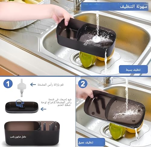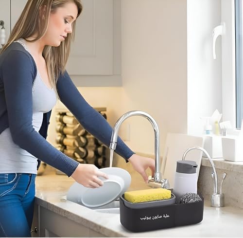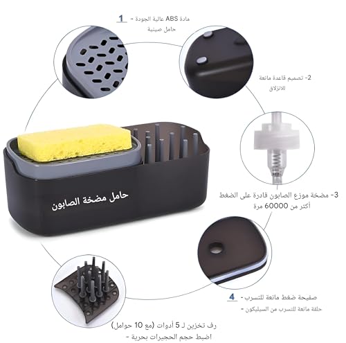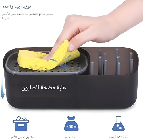 - This soap dispenser features a convenient 2-in-1 design that combines a liquid soap dispenser with a sponge holder, making it an efficient solution for dishwashing. It allows you to keep your cleaning essentials organized in one place, enhancing your kitchen's functionality.