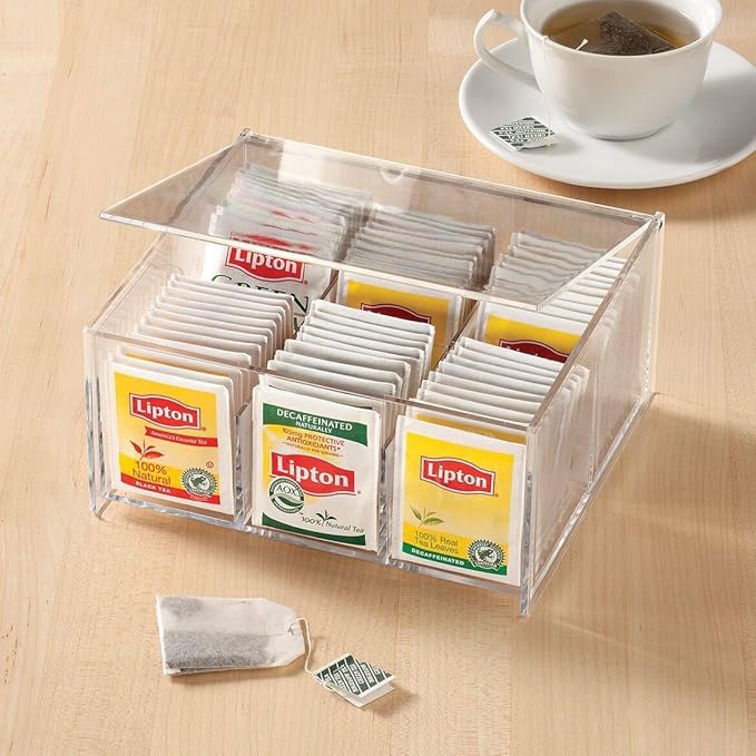 • VERSATILE ORGANIZATION: 6 compartment tea bag holder perfect for sorting different tea varieties and keeping your kitchen counter neat and organized