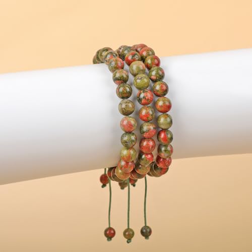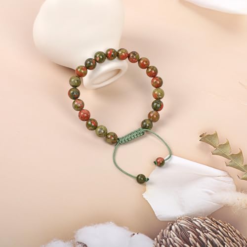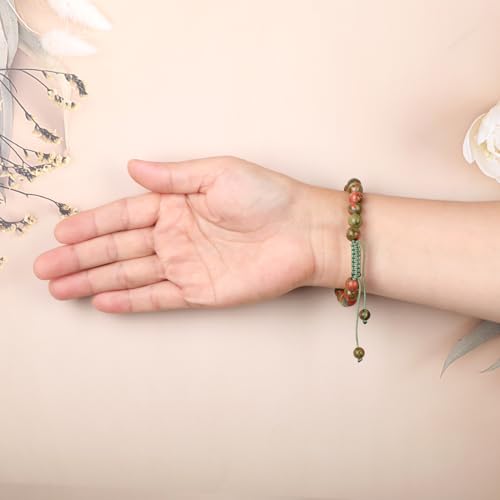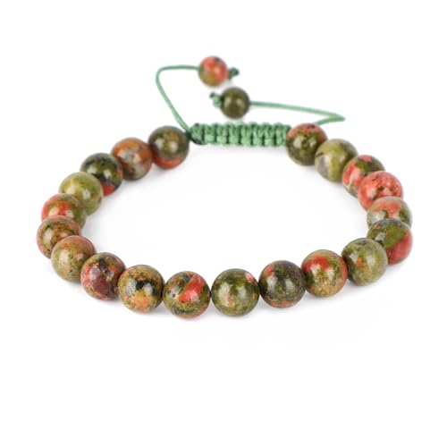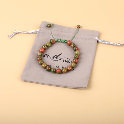 AD Beads - AD Beads Natural 8mm Gemstone Bracelets Healing Power Crystal Macrame Adjustable 7-9 Inch (Unakite)
