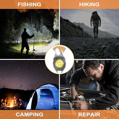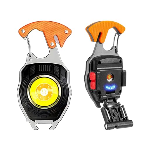 Adando - مصباح يدوي ليد صغير متعدد الوظائف بسلسلة مفاتيح، مصباح COB مع 7 أوضاع إضاءة، قابل لإعادة الشحن، أداة طوارئ متعددة الوظائف بشاشة عرض توضح مستوى الطاقة/دعامة قابلة للطي/فتاحة زجاجات من اداندو (برتقالي)