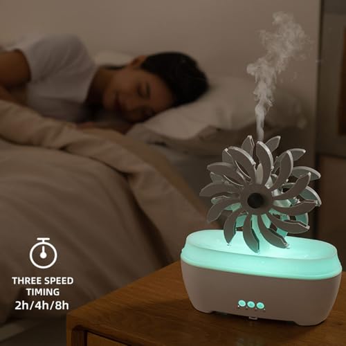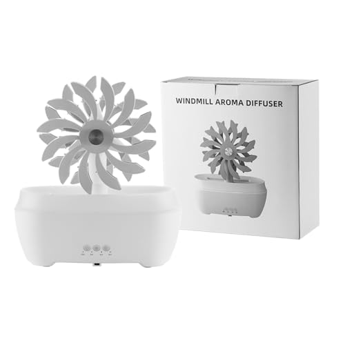 AEKAN - موزع الروائح العلاجية راين ويندميل، أجهزة الترطيب للزيوت عطرية على شكل طاحونة هوائية مع 7 مصابيح ليد ليلية قابلة للتعديل، مؤقت للتحكم عن بعد للنوم والاسترخاء من ايكان (رمادي)