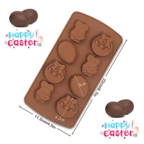 Afocuz - 1Pack Easter Silicone Molds for Candy, Cake, Chocolate and Ice Cube, Easter Egg and Bunny Mold, Includes Egg, Rabbit, Flower Barsket for Party (Style 01)