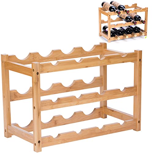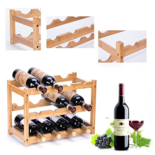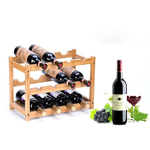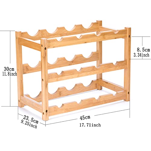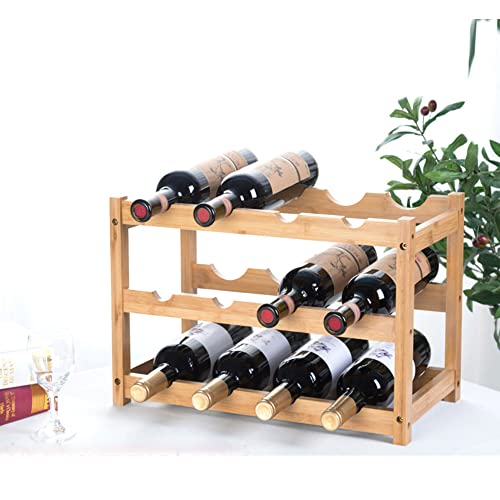 AGGICE - ايجيهس رف مشروبات من الخيزران، 12 زجاجة من 3 طبقات حامل زجاجات النبيذ لغرفة المعيشة، حامل تخزين المشروبات على سطح المنضدة، حامل عرض النبيذ من الخيزران