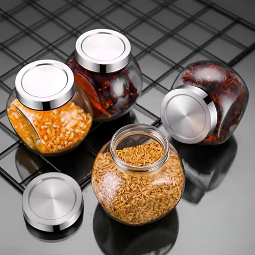 - With a total of four glass jars in the set, you can organize a variety of essential spices in a unified style, making your kitchen more organized, efficient and aesthetically pleasing at the same time.