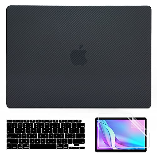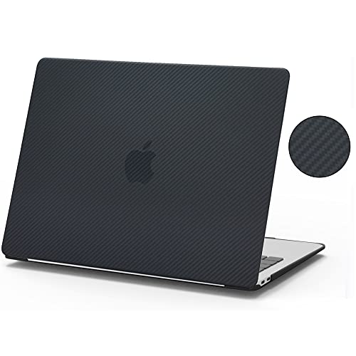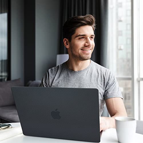 AKIT - جراب حماية صلب بلاستيكي رفيع للغاية وواقٍ للشاشة وجراب للوحة المفاتيح من الألياف الكربونية، متوافق مع ماك بوك اير 13 بوصة إصدار 2021 2020 2019 2018 موديلات M1 A2337 A2179 A1932 من أكيت، لون أسود