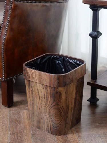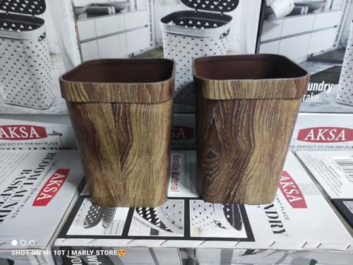 Generic - باسكت مهملات AKSA بلاستيك شكل خشبي سعة 10 لتر مدور