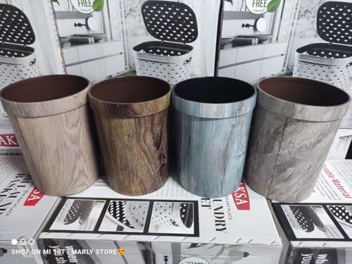- AKSA Wooden Shape Plastic Trash Basket 10L Round