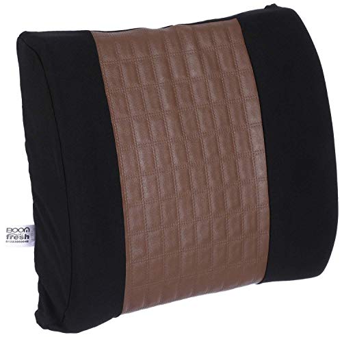 Al Hayah - Comfy Embroidered back support ergonomic memory foam Pillow - Adjustable strap - For Car seat - Vibration Massage- Velvet & Leather (Café * Black)