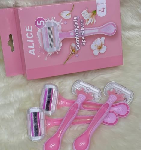 Generic - ماكينة حلاقة أليس للسيدات ALICE - شفرات من 5 طبقات مع شرائح من الصبار وفيتامين E لنعومة البشرة من أول مرة - 4 ماكينات متعددة الاستخدامات