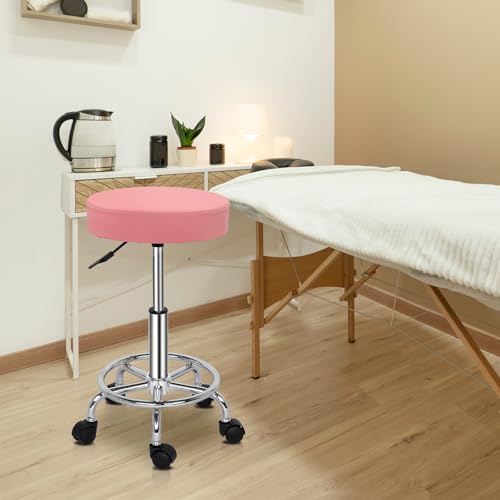 Alightup - Alightup Office Stool with Wheels Professional 360° Rotation Saddle Stool Height Adjustable for Massage Salon, Kitchen, Office, Clinic, Pub, Sewing, Painter, Piano (Pink2)