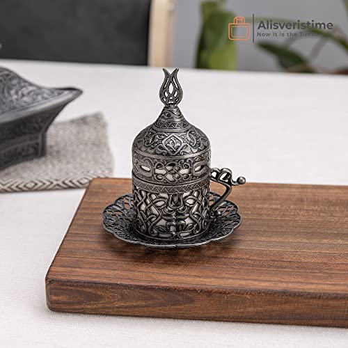 Alisveristime - طقم فناجين قهوة تركي وعربي واسبريسو ويوناني بتصميم عثماني مع طبق وغطاء من اليزفيريس تايم مجموعة قطعتين اكور اسود بورسلين 2 عدد 1