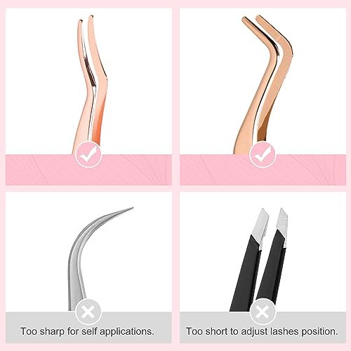- Sleek and Professional: It is recommended to use professional cluster eyelash tweezers instead of lash extension tweezers or eyebrow tweezers. Eyelash extension tweezer tips are too sharp for selp-appication. The eyebrow tweezer tips are too short for position adjusting.