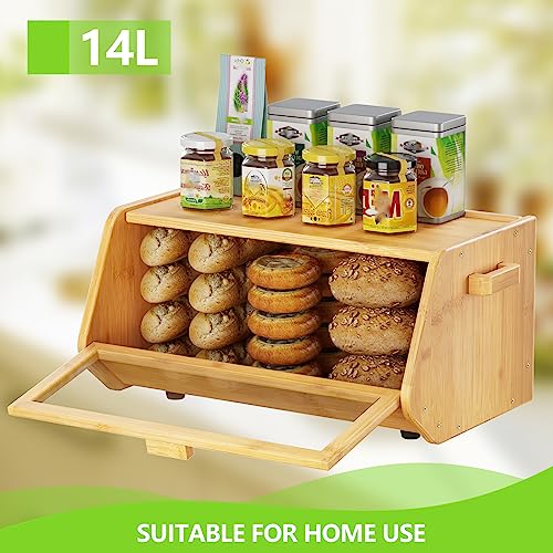 AMBIRD - AMBIRD Bamboo Bread Box keep the Bread Fresh For Kitchen Counter-Large Capacity Wooden Bread Storage Container Farmhouse Bread Box with Window Bread Holder