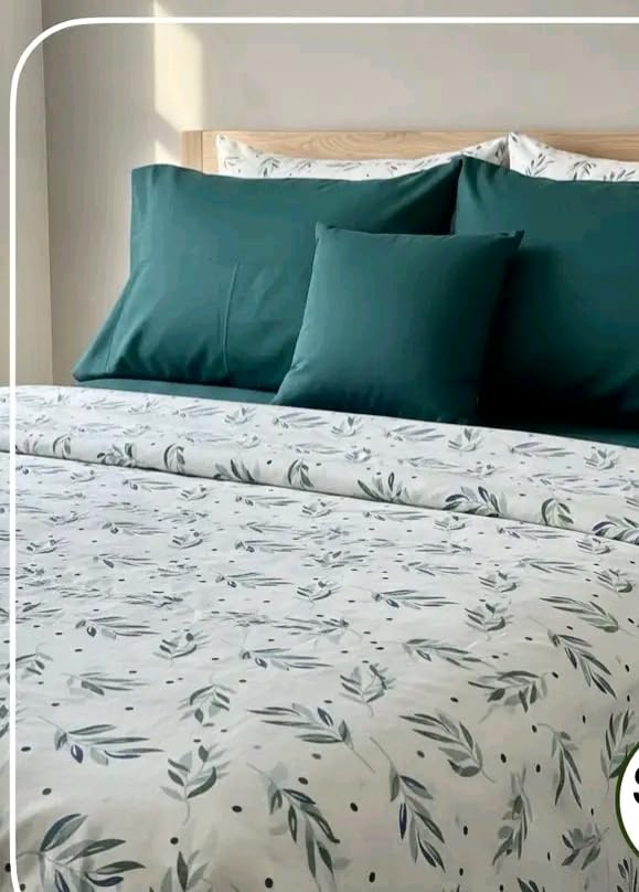 Generic - طقم لحاف كبير قطن AMERIA مع خدداات ، مشجر سادة مقاس 220 * 240 سم مع 4 خددات 50 * 70 سم 5 قطع