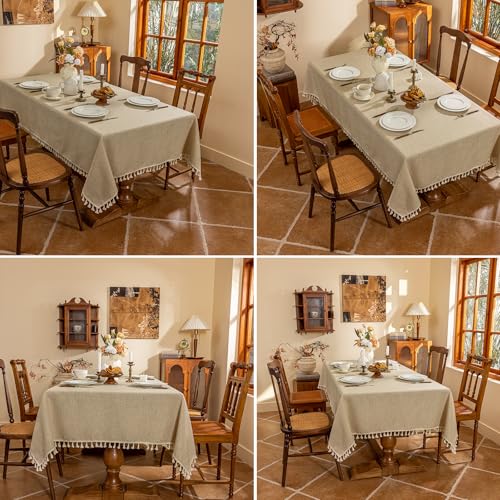 - 【Decors and Design】This tablecloths are crafted from great selection of linen fabric,rich linen texture and beautiful slub ,are an excellent experience of visual beauty. The thick tassels droop in the most beautiful angle and way, making your life luxurious and rich in texture.