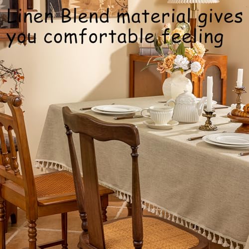 AmHoo - AmHoo Linen Blend Tablecloth Table Cloth 280 GSM Stitching Tassel Rectangle Decorative Natural Table Cover for Kitchen Dinning Wedding Buffet 55×86 inch Natural