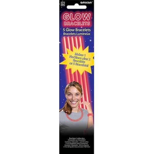 amscan - Amscan Red Glow Bracelets for Birthday Party - 8 inches, 5 Pieces