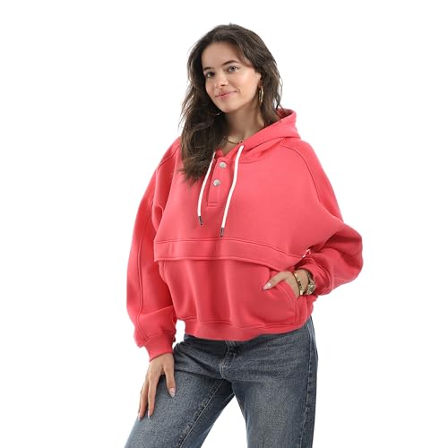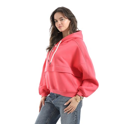 Andora - Andora Womens Half Zipper Closure With Hooded Collar Sweatshirt