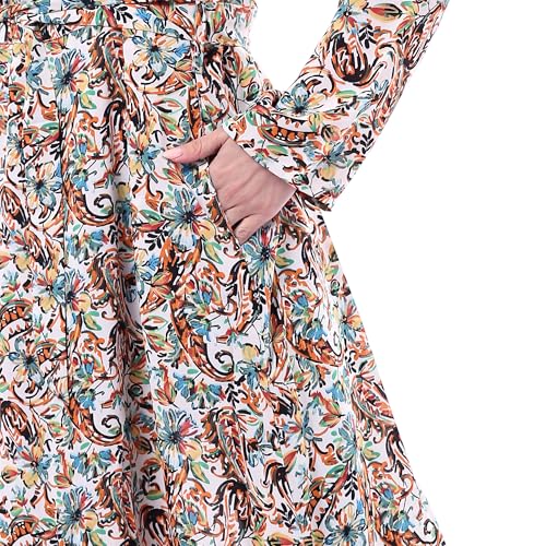 Andora - Andora womens Trendy Long Sleeves Flower Patterned Dress