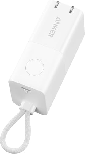 Anker - Anker 3-in-1 Power Bank, 5,000mAh Portable Charger with Built-in Lightning Cable and Foldable AC Plug, 30W Max Compact Battery Pack, for iPhone 14 Series, Galaxy, MacBook, and More- White