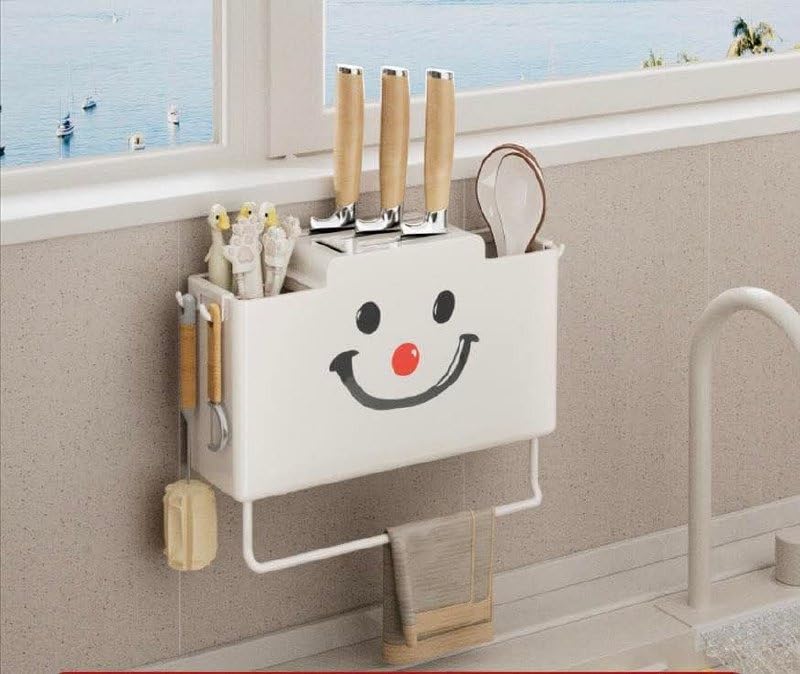 Generic - Ankh-Home-Supplies Kitchen Utensil Organizer with Design, Wall-Mounted Storage Rack, Multi-Compartment Holder for Chopsticks and Cutlery