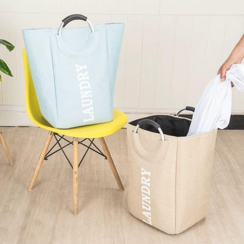 Generic - سلة غسيل قابلة للطي بسعة كبيرة من انخ هوم سابلايز، مصنوعة من قماش كتان، سلة تخزين شديدة التحمل مع مقابض، لون عشوائي
