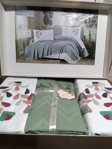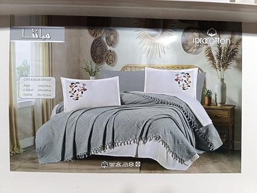 Generic - طقم كوفرته جيميزا بيرو قطن ميANTA كبيره عدد 4 قطع 1 كوفرته مقاس 240x260 سم و 1 ملاية مقاس 240x220 سم و 2 خداديه مقاس 50x70 سم لون تركواز